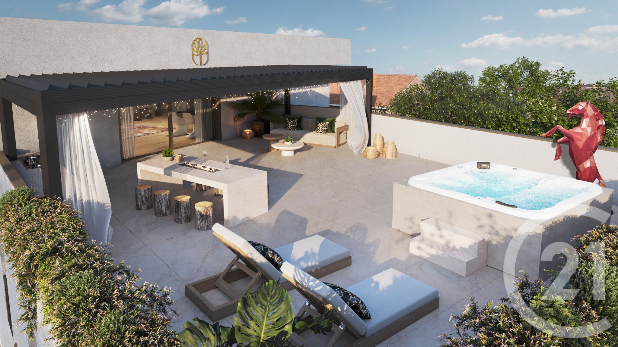 Il se composera d'un séjour ouvrant sur une grande terrasse de 87 m2 avec jacuzzi, de trois belles chambres et d'une salle de bains.
